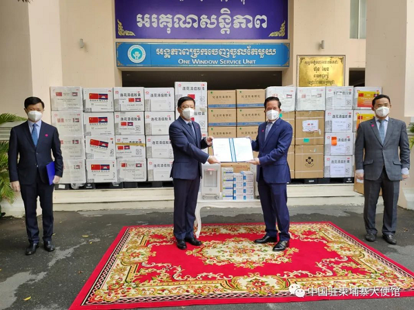 2021年8月11日,中國(guó)駐柬埔寨大使王文天出席中方向金邊市政府捐贈(zèng)抗疫物資交接儀式