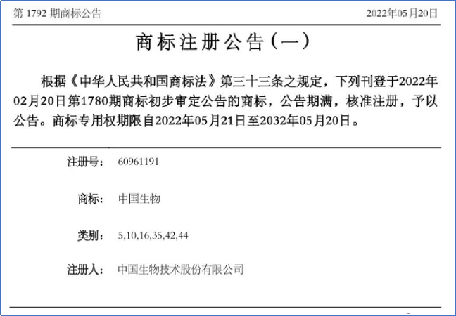 “國(guó)藥集團(tuán)”“中國(guó)生物”的商標(biāo)確權(quán),將有力打擊外部侵權(quán)及不正當(dāng)競(jìng)爭(zhēng)行為,推動(dòng)國(guó)藥集團(tuán)品牌保護(hù)工作邁向新局面。