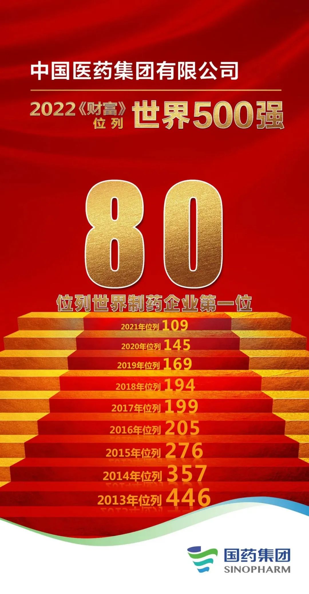重磅!國(guó)藥集團(tuán)位列世界500強(qiáng)第80位!制藥企業(yè)第1位!