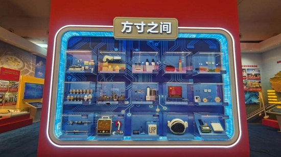 中央綜合展區(qū)第一單元“經(jīng)濟(jì)建設(shè)”,一號(hào)展位“方寸之間”大型立體展區(qū),集中展示我國科技水平和制造能力躍升的自主研發(fā)關(guān)鍵產(chǎn)品實(shí)物、模型。
