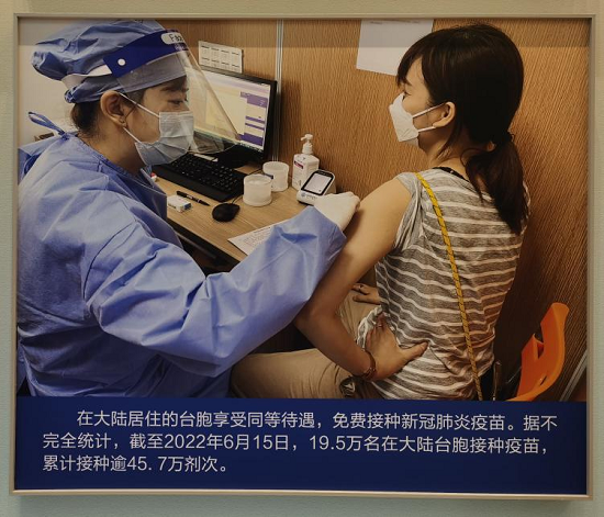 中央綜合展區(qū)第十單元“堅(jiān)持‘一國兩制’ 推進(jìn)祖國統(tǒng)一”臺(tái)灣篇章,臺(tái)灣同胞接種國藥集團(tuán)中國生物新冠疫苗的高清照片體現(xiàn)了對(duì)臺(tái)灣同胞健康福祉的真情關(guān)懷。19.5萬人和45.7萬劑次的數(shù)字,也反映了臺(tái)灣同胞對(duì)國藥疫苗安全性、有效性的高度認(rèn)可。