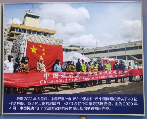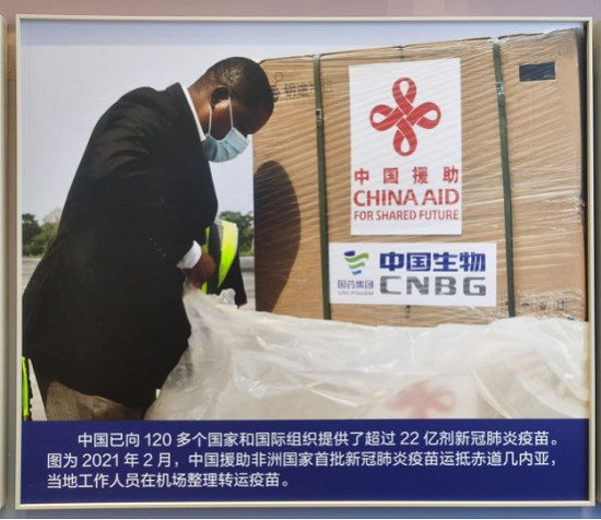 中央綜合展區(qū)第十一單元“外交工作”,展出了多幅國藥集團(tuán)推進(jìn)抗擊新冠肺炎疫情國際合作,執(zhí)行海外援助任務(wù)等助力構(gòu)建人類命運(yùn)共同體的圖片。