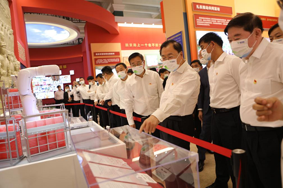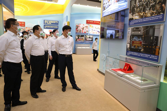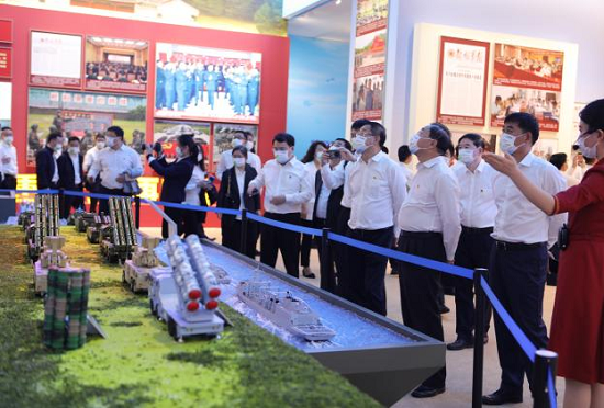 劉敬楨帶領(lǐng)同志們依次走進序廳、中央綜合展區(qū)、地方展區(qū)、展望展區(qū)、室外展區(qū)和互動展區(qū)6個展區(qū),跟隨講解深入了解圖片、實物、模型等6000多項展覽要素,一件件實物模型、一段段生動視頻、一幅幅圖片圖表,角度豐富、內(nèi)涵飽滿,激發(fā)了大家的愛國熱情和自豪感。參觀中,大家認(rèn)真聆聽講解,仔細(xì)觀看展品及圖片,或認(rèn)真思索、或駐足交流,通過高度凝練的展覽內(nèi)容,全景式地感受黨的十八大以來所取得的輝煌成就。