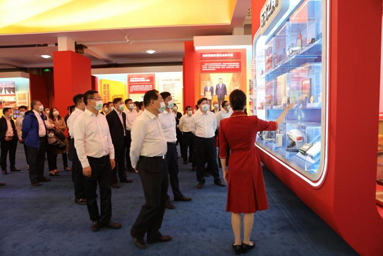 國藥集團多項標(biāo)志性成果,以實物、模型、照片等多種形式在多個展區(qū)重磅亮相,大家從一個個熟悉的實物、模型、視頻、圖片中,感受到了國藥人與祖國共奮進的成績,倍感自豪,紛紛在展品前駐足觀摩、拍照留念,特別是看到新冠疫苗生產(chǎn)車間模型、全球首款新冠疫苗、國藥援滬醫(yī)療隊請戰(zhàn)書、抗疫物資國際援助圖片等展品,大家共同回憶面對新冠肺炎疫情大戰(zhàn)大考,國藥集團作為生命醫(yī)藥健康領(lǐng)域的國家隊、主力軍,首當(dāng)其沖、首擔(dān)其責(zé),全員動員、全線出擊、全域作戰(zhàn)、全力以赴,克服各種難以想象的困難,打贏了一系列大仗、硬仗、漂亮仗的絢麗篇章。
