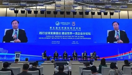 11月5日下午,劉敬楨董事長(zhǎng)與董增賀副總經(jīng)理應(yīng)邀出席第五屆虹橋國(guó)際經(jīng)濟(jì)論壇“踐行全球發(fā)展倡議,建設(shè)世界一流企業(yè)”分論壇。論壇由商務(wù)部、國(guó)務(wù)院國(guó)資委、聯(lián)合國(guó)全球契約組織聯(lián)合主辦。國(guó)務(wù)院國(guó)資委黨委委員、秘書(shū)長(zhǎng)彭華崗,聯(lián)合國(guó)助理秘書(shū)長(zhǎng)、聯(lián)合國(guó)全球契約組織總干事桑達(dá)·奧佳博出席并致辭。劉敬楨董事長(zhǎng)受邀參加“踐行全球發(fā)展倡議,建設(shè)世界一流企業(yè)”行動(dòng)計(jì)劃及成果發(fā)布,與中外知名企業(yè)、國(guó)際組織負(fù)責(zé)人及知名專(zhuān)家學(xué)者就“攜手抗疫、維護(hù)全球產(chǎn)業(yè)供應(yīng)鏈穩(wěn)定、加強(qiáng)交流合作”等方面進(jìn)行研討。