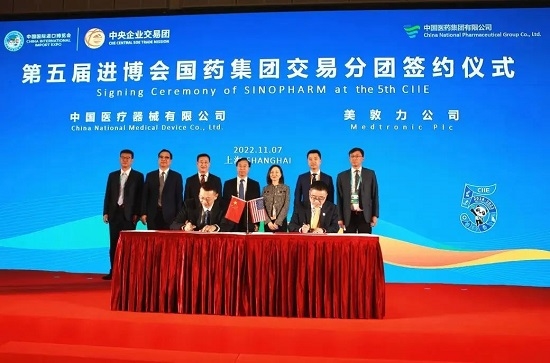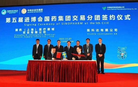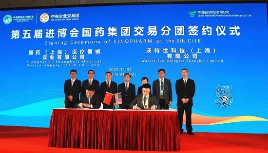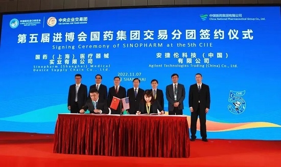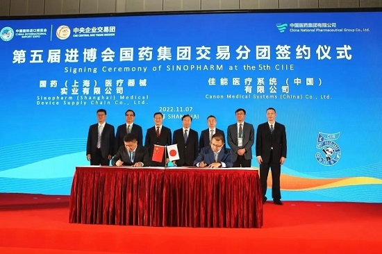 11月7日下午,國(guó)藥集團(tuán)交易分團(tuán)簽約儀式在第五屆進(jìn)博會(huì)舉辦,劉敬楨董事長(zhǎng)和董增賀副總經(jīng)理出席并見(jiàn)證簽約儀式。在本屆進(jìn)博會(huì)上,國(guó)藥集團(tuán)繼續(xù)擴(kuò)大國(guó)際合作,與來(lái)自美國(guó)、德國(guó)、日本、瑞典、荷蘭等國(guó)家的世界領(lǐng)先的醫(yī)藥健康企業(yè)簽署16項(xiàng)采購(gòu)合同和協(xié)議,簽約總額實(shí)現(xiàn)兩位數(shù)增長(zhǎng),再創(chuàng)歷史新高,在醫(yī)藥大健康領(lǐng)域名列前茅。