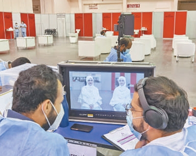 由中國國藥集團與巴林政府共同成立的國際臨床研究中心,坐落在巴林王國首都麥納麥的巴林國際會展中心。在臨時設(shè)置的10多個房間里,醫(yī)療技術(shù)人員正在為報名參與試驗的志愿者掃碼、打卡、解釋流程等,就抗新冠病毒單克隆抗體鼻用噴霧劑(以下簡稱“單抗F—61”)在巴林的臨床應(yīng)用進行研究。