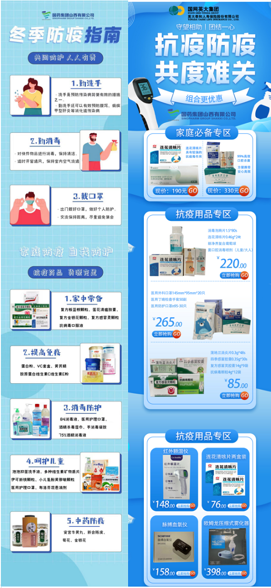 為進(jìn)一步做好疫情防控工作,近日,國務(wù)院聯(lián)防聯(lián)控機制綜合組相繼發(fā)布了《關(guān)于進(jìn)一步優(yōu)化新冠肺炎疫情防控措施科學(xué)精準(zhǔn)做好防控工作的通知》和《關(guān)于進(jìn)一步優(yōu)化落實新冠肺炎疫情防控措施的通知》。隨著相關(guān)政策的逐步落實,公眾自我防范意識進(jìn)一步增強,防疫藥品及相關(guān)防疫物資需求量也在增加,為確保百姓用藥需求和公眾健康,國藥山西營業(yè)部承擔(dān)起保障藥品供應(yīng)的責(zé)任和義務(wù),為百姓的用藥安全保駕護(hù)航。