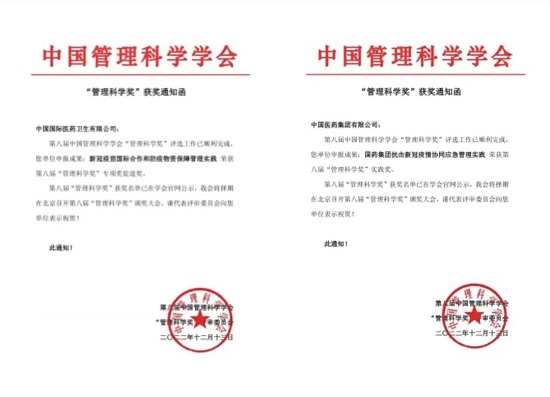 為認(rèn)真落實(shí)加快構(gòu)建新發(fā)展格局、著力推動高質(zhì)量發(fā)展的戰(zhàn)略部署,中國管理科學(xué)學(xué)會組織開展第八屆“管理科學(xué)獎(jiǎng)”申報(bào)活動。集團(tuán)工業(yè)發(fā)展與科研管理部積極組織總部各部門、各子公司進(jìn)行申報(bào),經(jīng)中國管理科學(xué)學(xué)會評審辦公室規(guī)范性審核,專家組初審、復(fù)審、終審,國藥集團(tuán)申報(bào)的實(shí)踐類《國藥集團(tuán)抗擊新冠疫情協(xié)同應(yīng)急管理實(shí)踐》和國藥國際申報(bào)的促進(jìn)類《新冠疫苗國際合作和防疫物資保障管理實(shí)踐》獲得“第八屆管理科學(xué)獎(jiǎng)”。