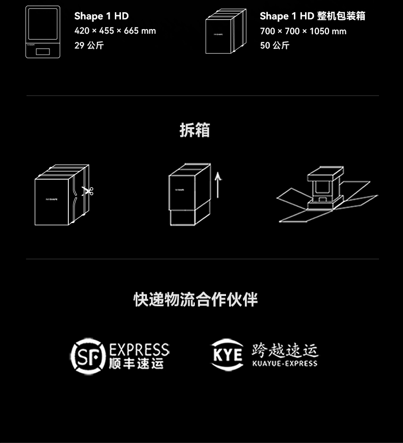 Rayshape shape1/shape 1+ HD 光固化3d打印機(jī)再造精細(xì)化3d打印新方式,0.05mm尺寸精度可滿足絕大多數(shù)3d打印零件需求,令人贊嘆的細(xì)節(jié)再現(xiàn),無(wú)論是纖毫畢現(xiàn)的肌理,還是光滑溫潤(rùn)的表面都展現(xiàn)出杰出的3d打印效果,采用DLP+LFPTM技術(shù),比SLA 3D打印技術(shù)快5倍,更快但更精細(xì),卓越品質(zhì)讓人贊嘆。shape1 可廣泛應(yīng)用于概念原型、功能原型的構(gòu)件、數(shù)字齒科、精密零件的制造、藝術(shù)作品、模具、玩具、手辦都可以輕松搞定。shape1 光固化3d打印機(jī)更小巧但更智能!