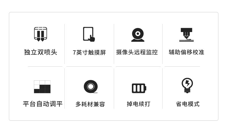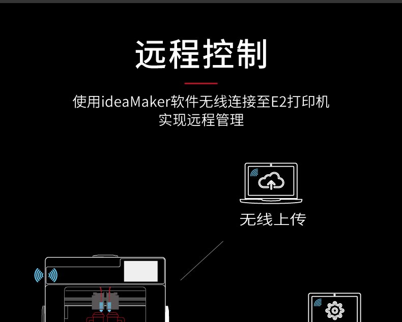RAISE E2擁有IDEX單雙噴頭打印系統(tǒng),更高效率,更快速度,支持鏡像打印,復(fù)制打印,自動平臺調(diào)整功能,遠(yuǎn)程無限遙控,內(nèi)置攝像頭隨時監(jiān)控打印效果,RAISE E2讓3d打印變得更加簡單!RAISE E2全新一代3d打印機(jī),重新定義高品質(zhì)3d打印需求,為你展現(xiàn)前所未有的智能時刻,獨(dú)立雙噴頭,7寸觸摸屏,遠(yuǎn)程遙控攝像頭,輔助偏移校準(zhǔn),隨時打印,隨時監(jiān)控,安全便捷。